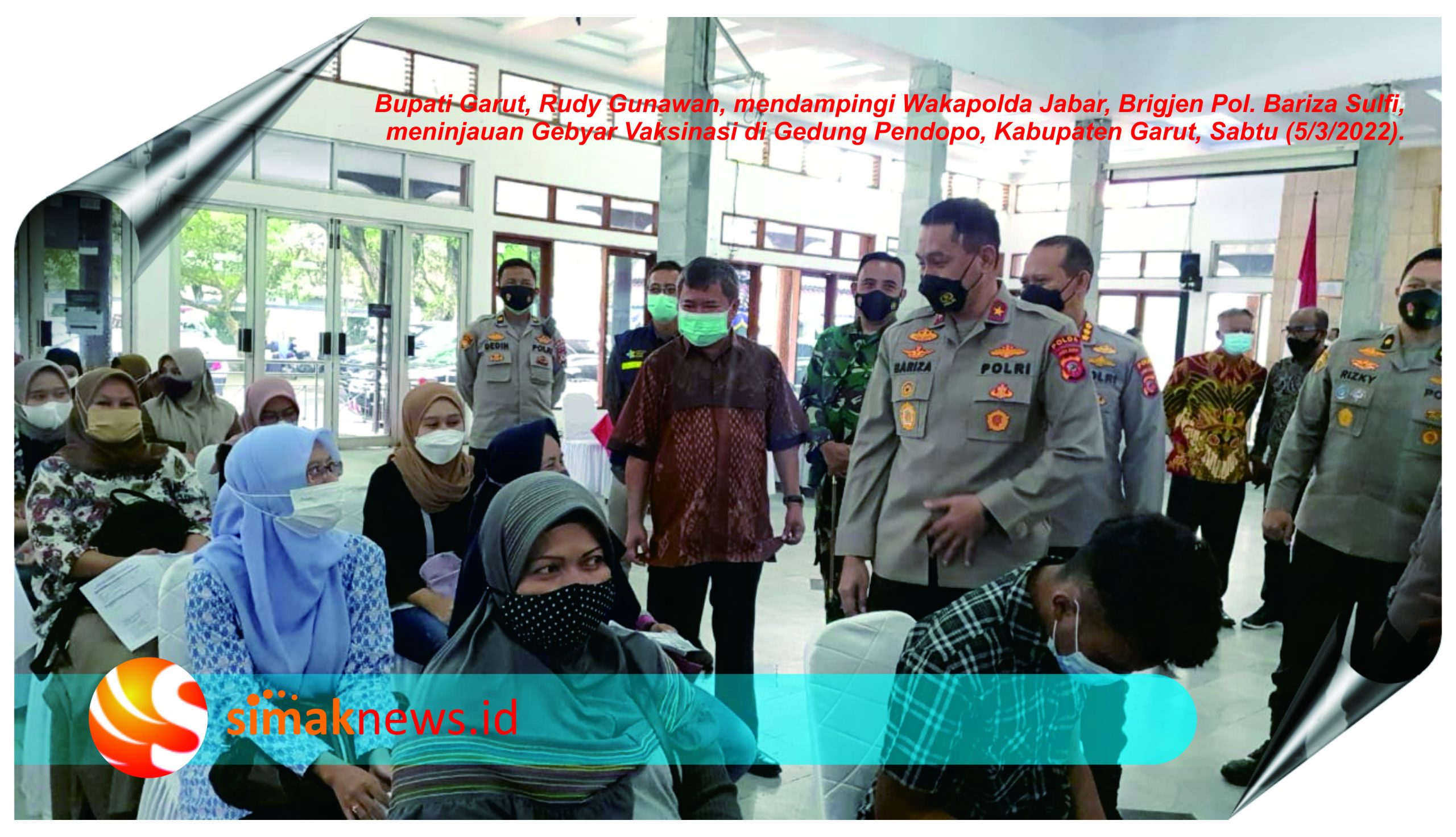 (KAB.GARUT), simaknews.id – Bupati Garut Rudy Gunawan, mendampingi Wakil Kepala Kepolisian Daerah (Wakapolda) Jawa Barat, Brigjen Pol. Bariza Sulfi, dalam peninjauan Gebyar Vaksinasi di Gedung Pendopo, Kabupaten Garut, Sabtu (5/3/2022).